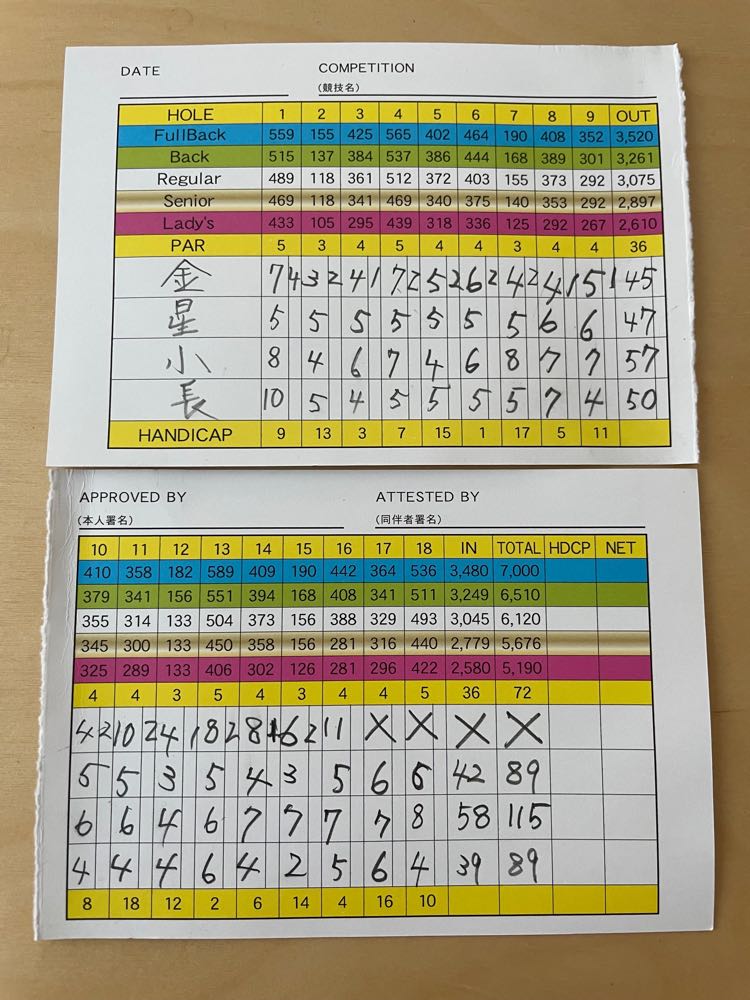 前半は45で調子が良い感じでしたが、後半の2ホール目で、アイアンでシャンクとダフリ、バンカーが出せないと、明らかにスイングの質が変わり、16番ホールでパターがまともに打てなくなり、リタイアしました。