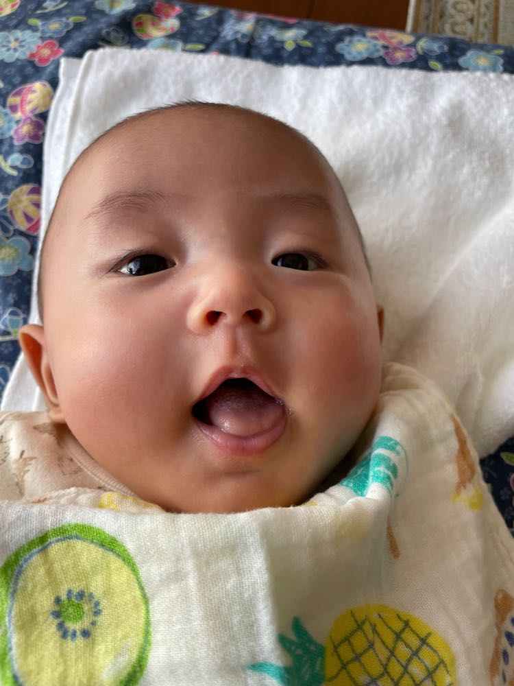 尚央成長日記(38) 投稿日時: 2023年8月26日 投稿者: tokyoenkei 2週間ぶりに尚央に会いに行きました。 生後85日目。一段と表情豊かになってきました。 ほっぺがプックリして、クレヨンしんちゃんにそっくり。 お昼ごはんは、串揚げをいただきました。