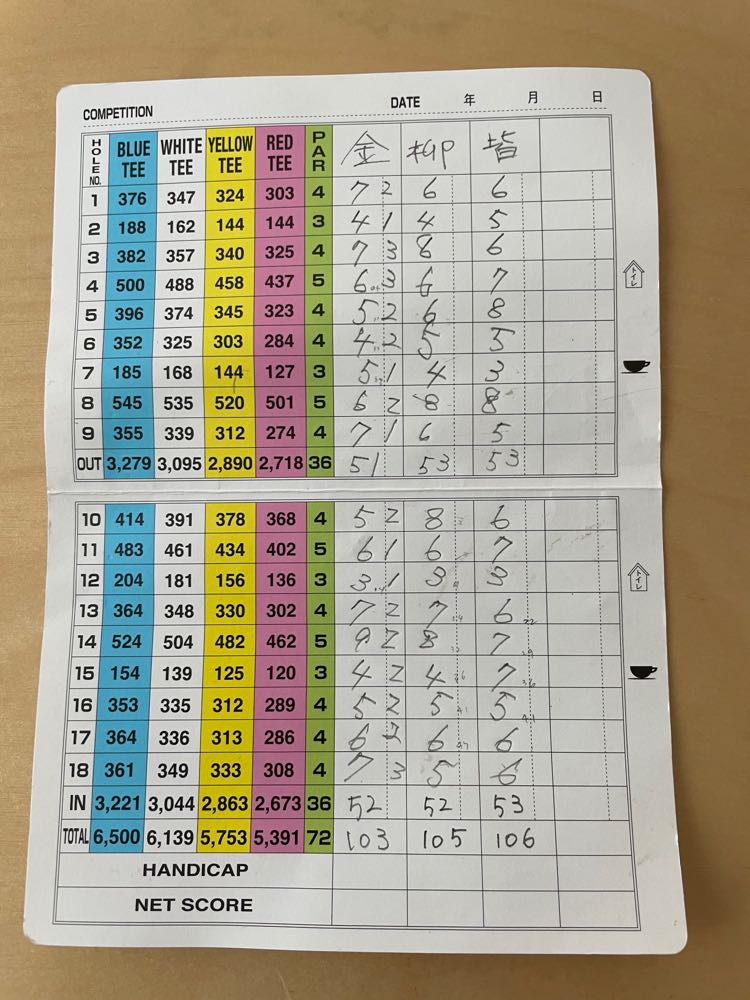 スコアは、OUT51 IN52 の103でした。