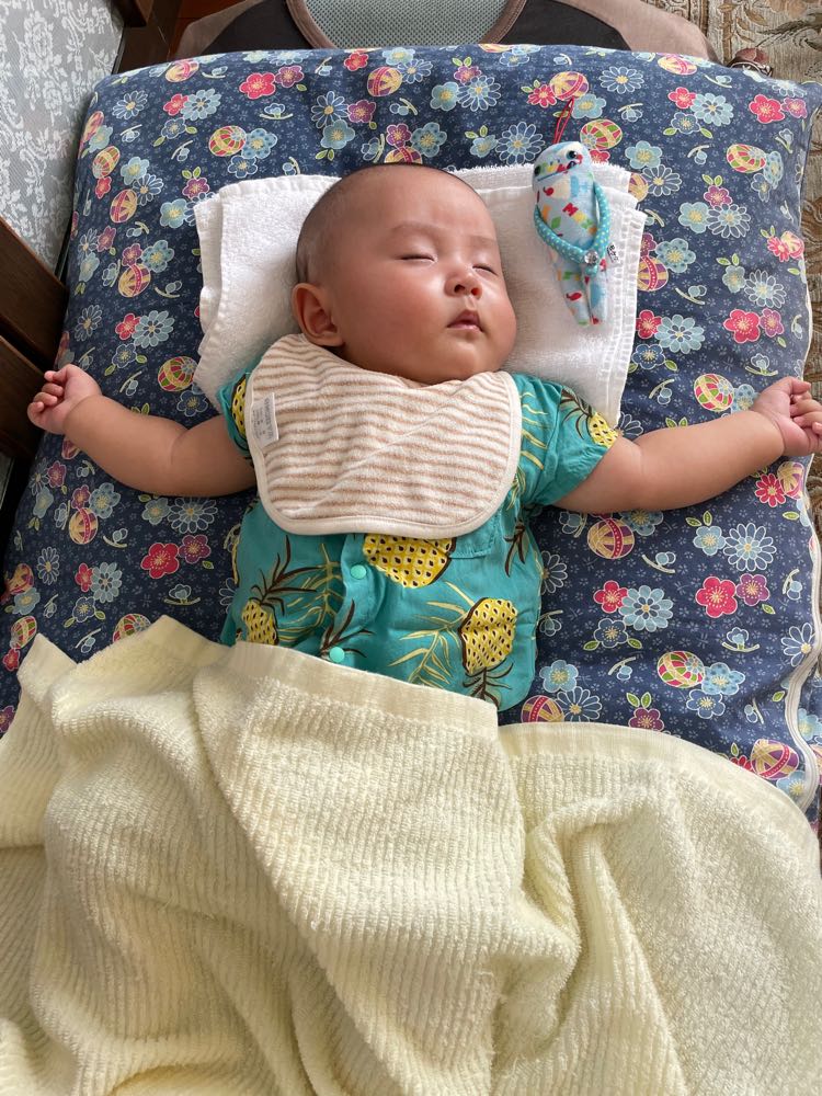 尚央成長日記(45) 投稿日時: 2023年9月23日 投稿者: tokyoenkei モケケに興味津々な尚央です。 そして、モケケと一緒に爆睡です。 このモケケは、鹿児島出張で購入したカキ氷のシロクマ柄の地域限定モケケです。モケケとは、ヘンテコ宇宙人という設定らしいです。