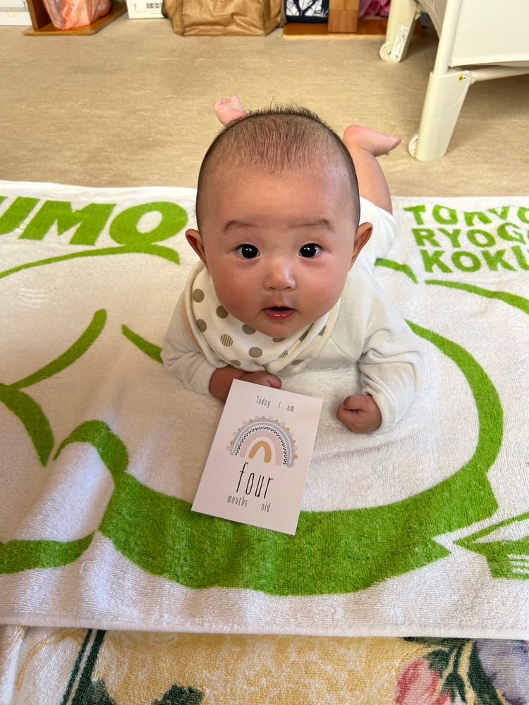 生誕4ヶ月記念は、うつ伏せポーズです。