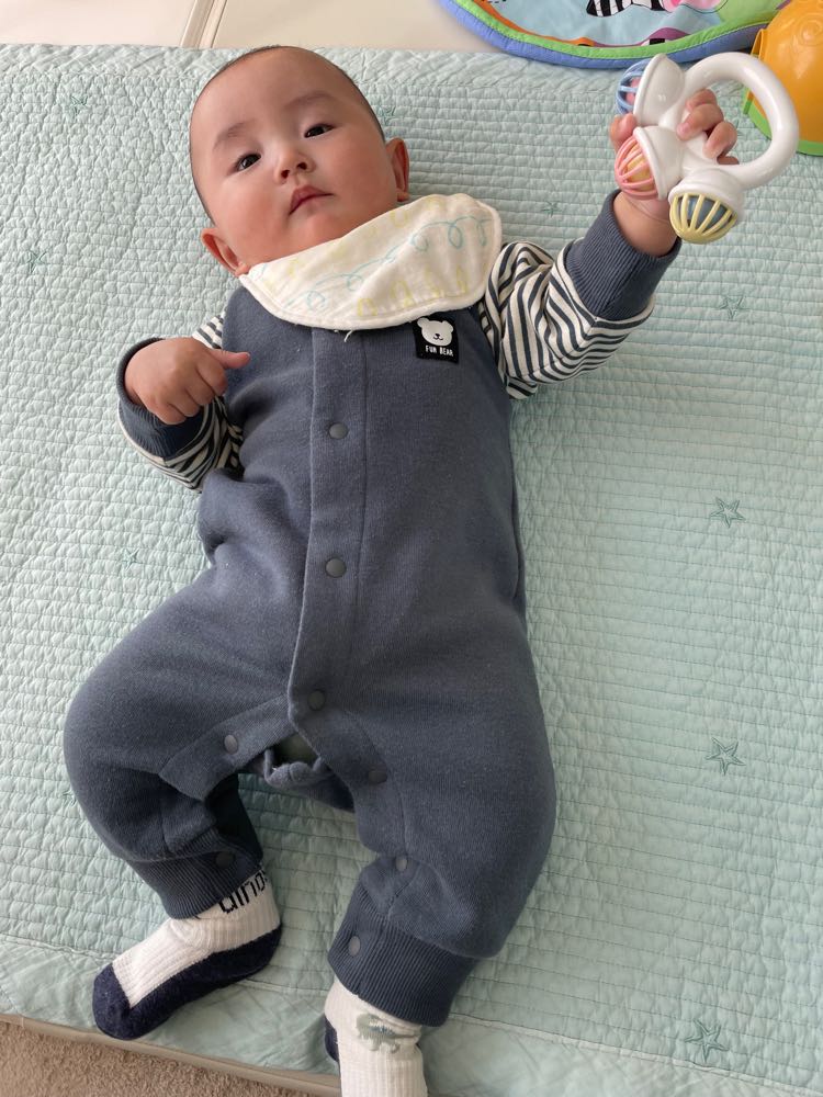 日に日に寒くなってきて、尚央も先日西松屋で購入した冬服になりました。