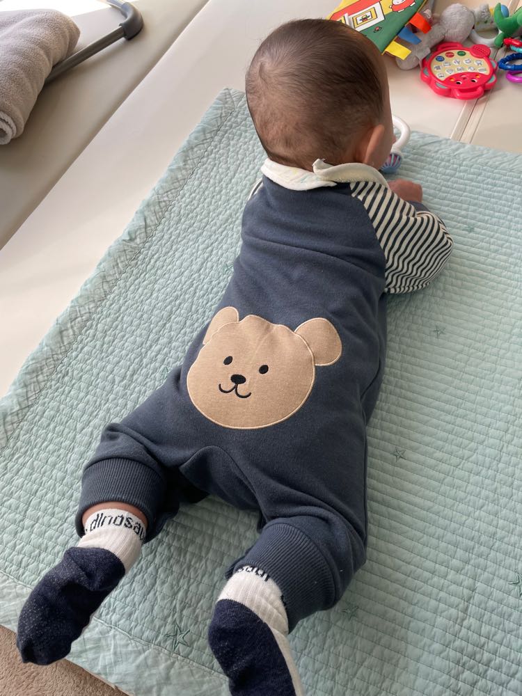 尚央成長日記(60) 投稿日時: 2023年11月16日 投稿者: tokyoenkei 日に日に寒くなってきて、尚央も先日西松屋で購入した冬服になりました。 お尻にクマさんの顔ワッペン、なんで? 赤ちゃん服の世界がよくわからない…
