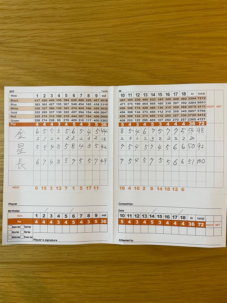 スコアは、OUT44 IN54の98でした。
