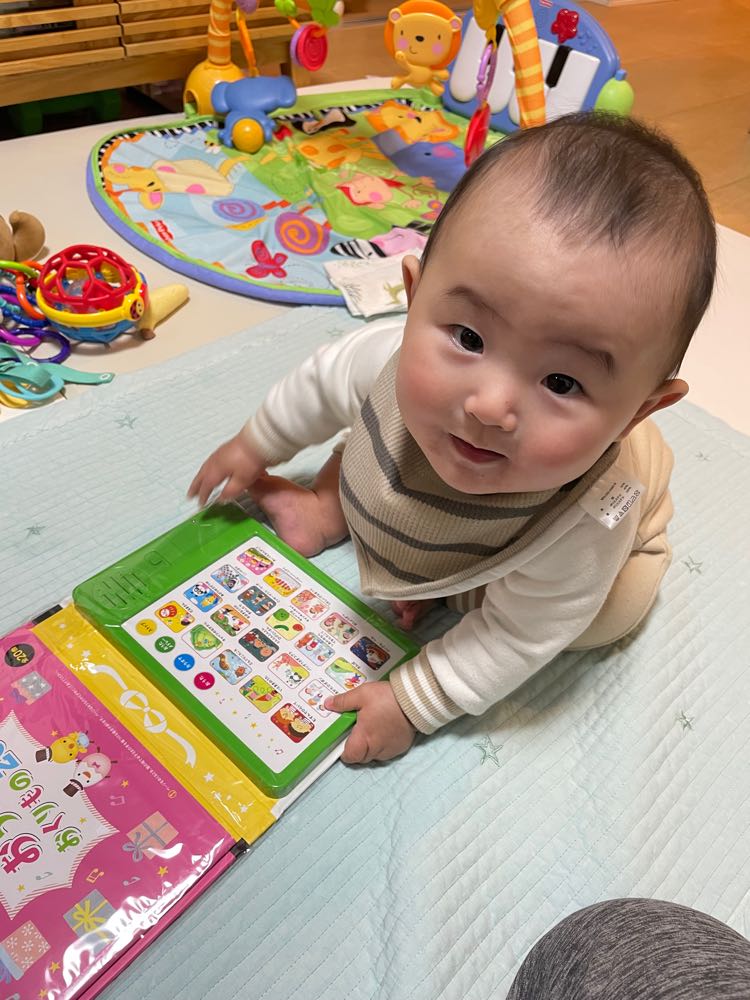 音が出る絵本は、楽しいみたいです。