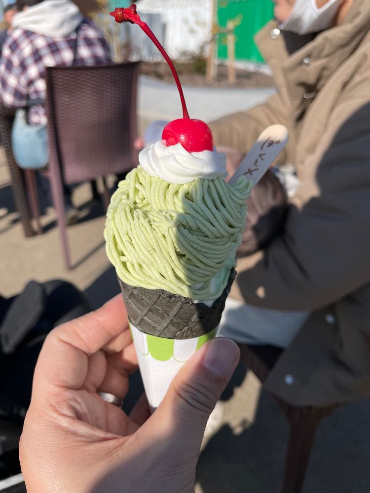 食後は、外で「メロンモンブランソフト」をいただきました。