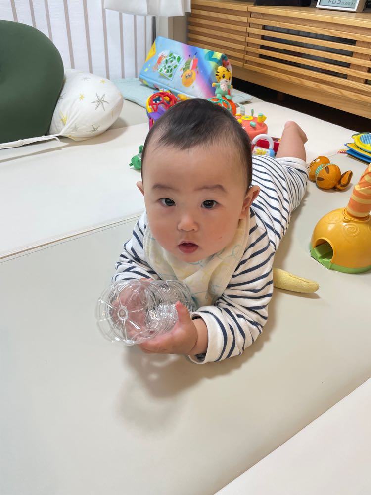 尚央成長日記(105) 投稿日時: 2024年2月12日 投稿者: tokyoenkei 返信 尚央の最近のお気に入りは、ペットボトルの中に丸めたアルミホイルをいれたもの。 揺らしたり、転がしたり、投げ飛ばして、遊んでいます。