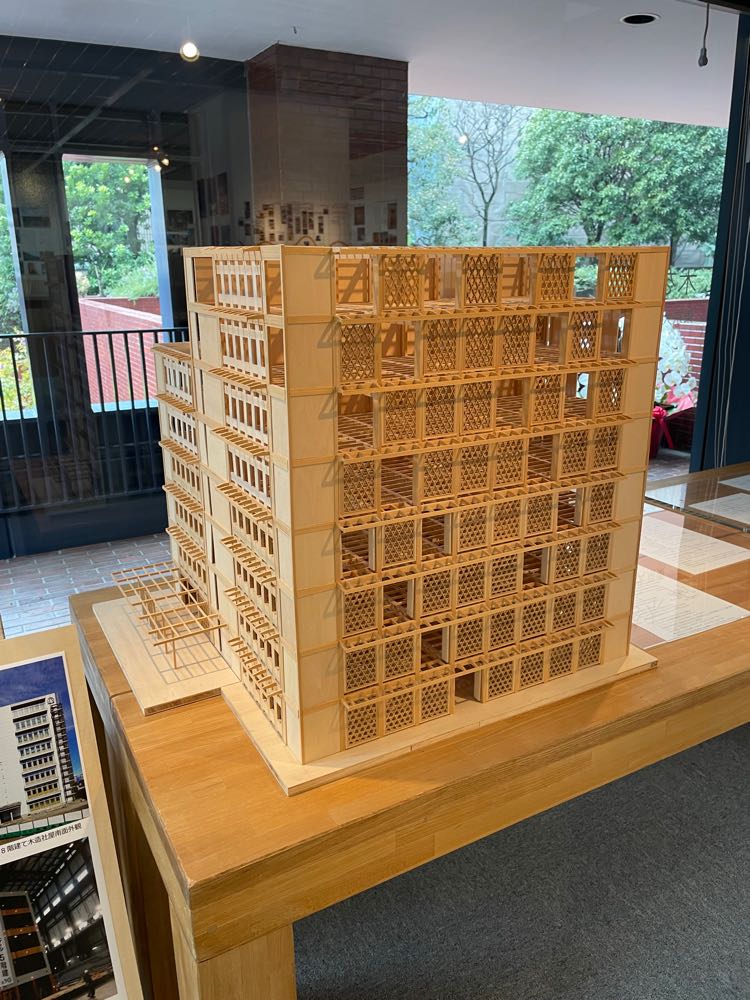 たくさんの模型と共に稲山先生の手書きの構造スケッチが展示されていました。手書きの構造スケッチには、細かく部材の寸法と加工が記載されていて、その緻密さに驚きました。