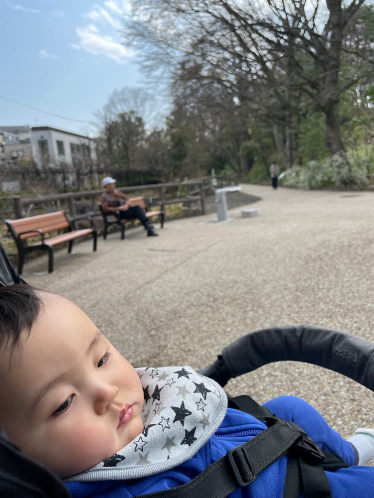 尚央成長日記(120) 投稿日時: 2024年3月17日 投稿者: tokyoenkei 今日は、ママが1週間分の離乳食作りで忙しいので、パパと尚央のふたりで散歩です。 いつもの光が丘公園ではなく、赤塚公園と赤塚植物園に行ってきました。 小春日和で、尚央はウトウトしていました。