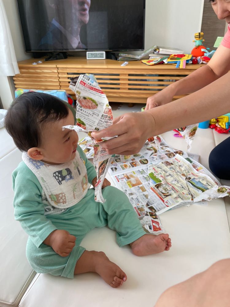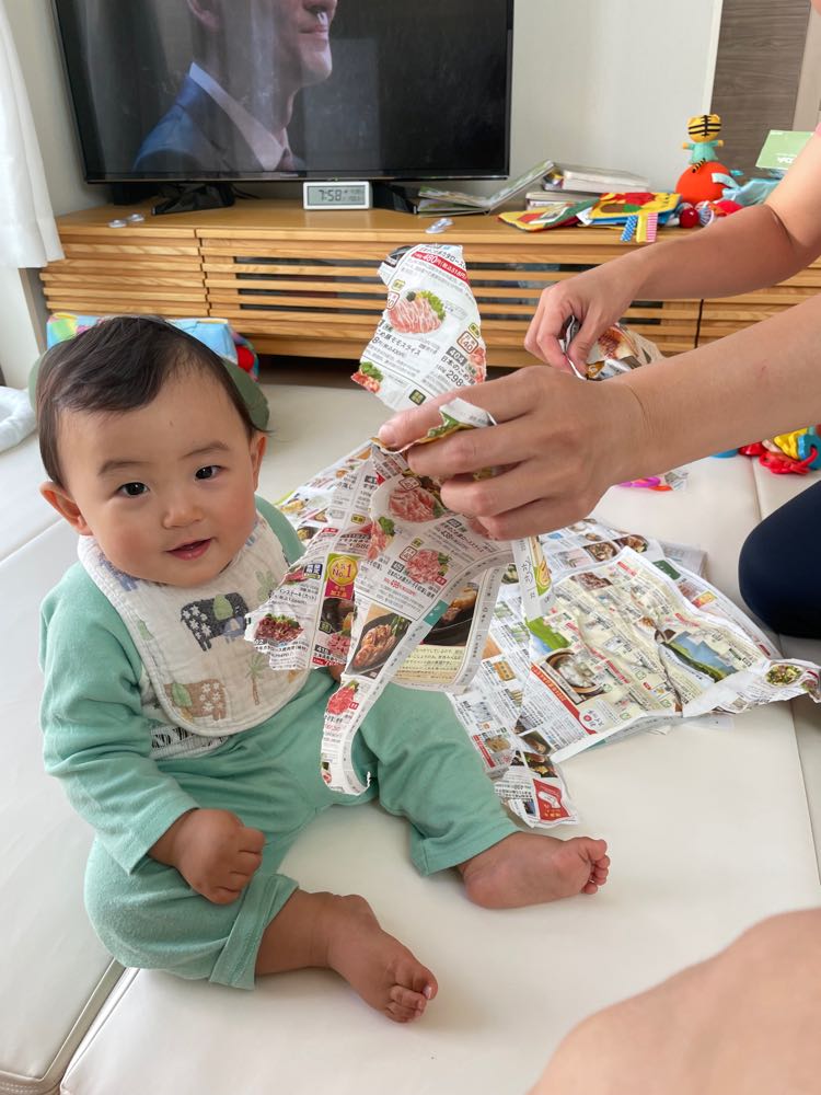 絵本が好きな尚央ですが、絵本をビリビリ破いてしまうので、チラシで思いきり破いてもらうことにしました。
