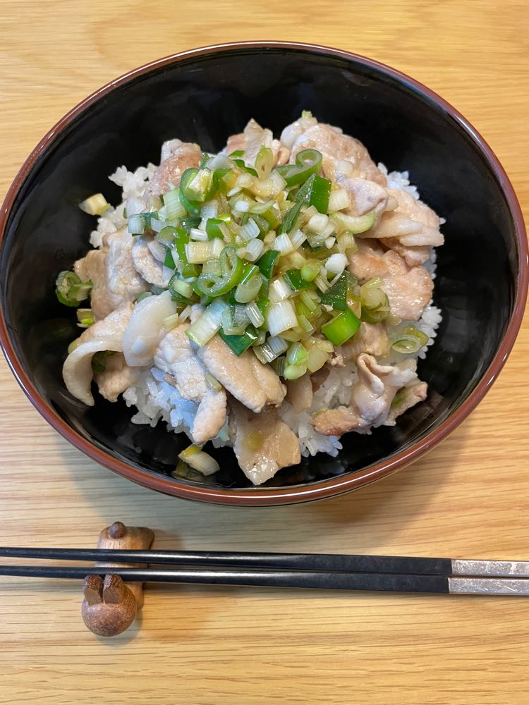 今日の晩御飯は、『ネギ塩豚丼』です。