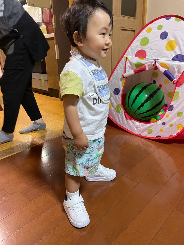 尚央成長日記(208) 投稿日時: 2024年9月7日 投稿者: tokyoenkei 歩きはじめたので、外歩きができるように靴を買いました。 早速、履かせてみましたが、 立っているだけで、まったく動けませんでした。 もう少し練習が必要のようです。