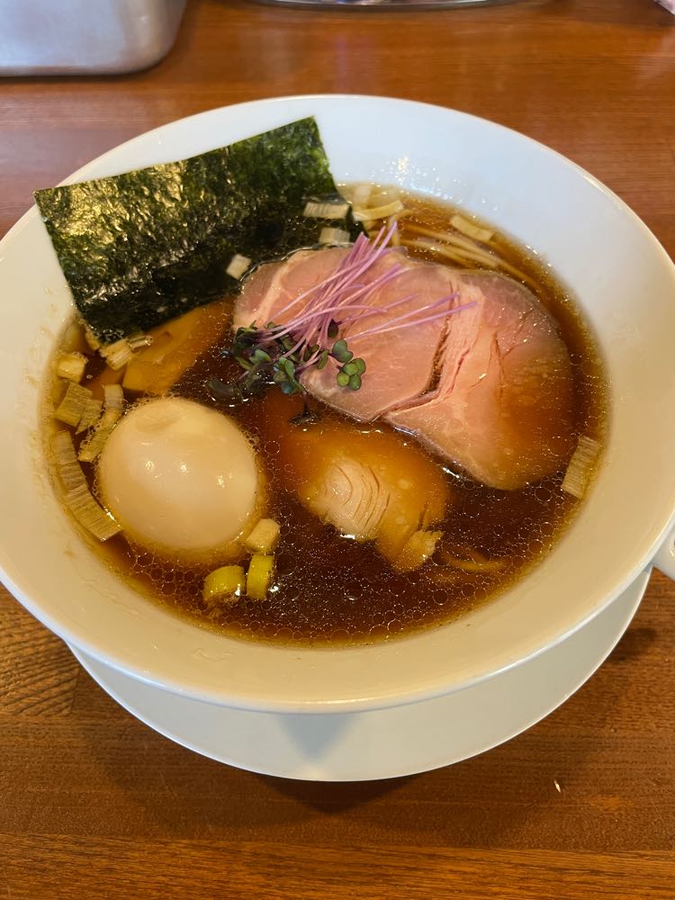 ツルツルシコシコの細麺と鶏ガラ、鮪アラ、昆布のスープが絶品でした。チャーシューも豚と鶏の2種類。味玉の黄身の仕上がり具合も完璧でした。