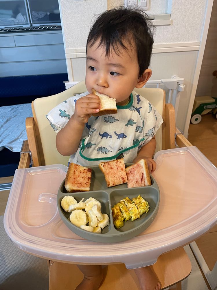 今日の朝ごはんです。卵アレルギーもありましたが、1歳を過ぎてからは食べれるようになりました。