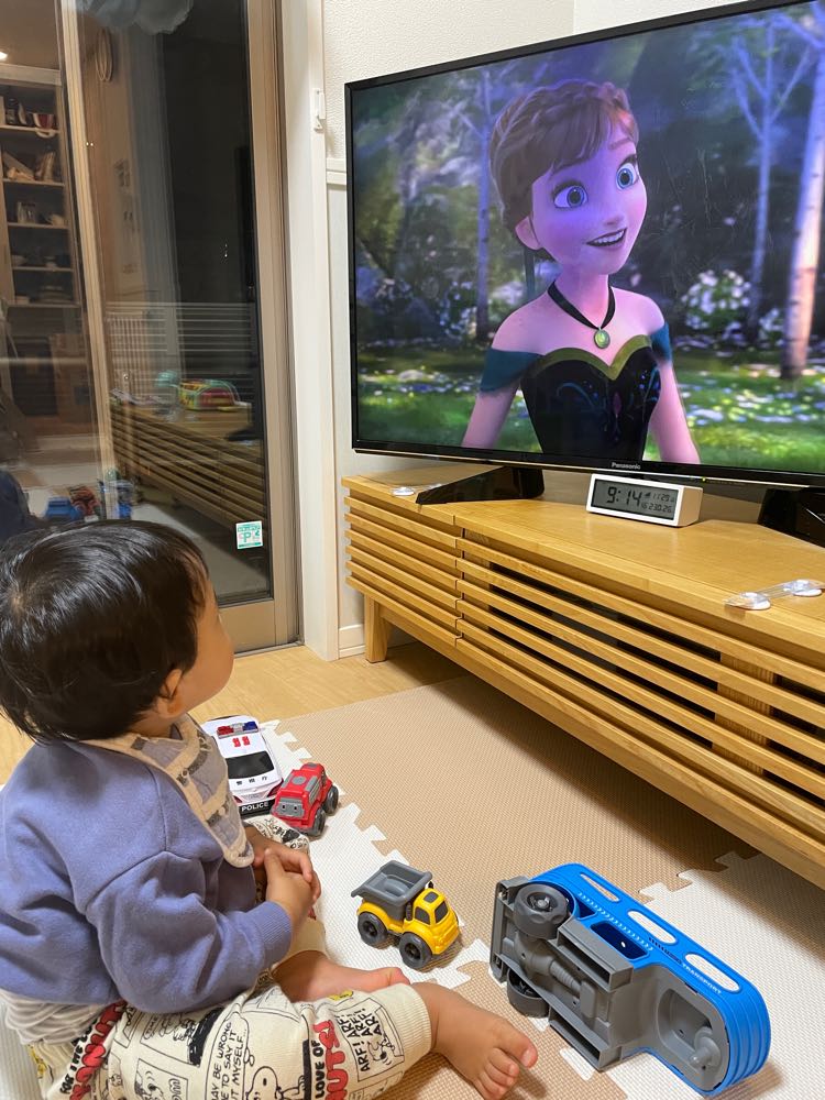 「アナと雪の女王」に釘付けの尚央。