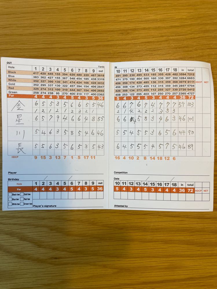 前半は、ドライバーもパターも調子が良かったのですが、後半は180ヤードのパー3で4パットで調子を崩し、ズルズルとスコアが悪くなり、100切りできず。