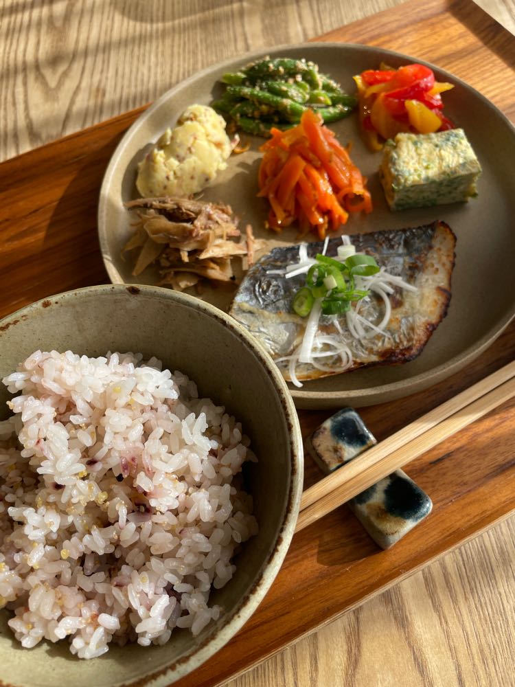 今日の魚は、サワラの塩麹焼きでした。その他に6種類のお惣菜がつきます。