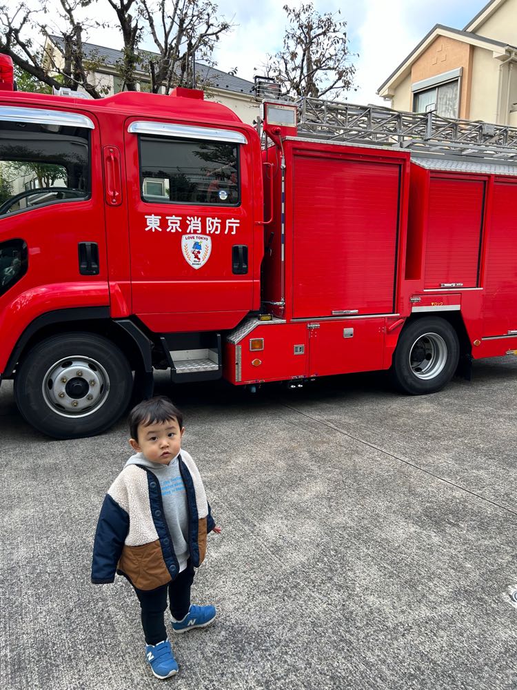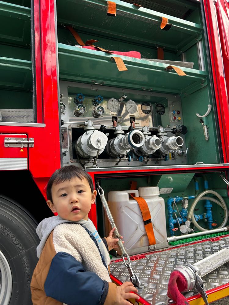 消防車が大好きな尚央は、大興奮です。