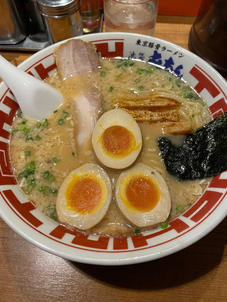 屯ちん池袋本店 投稿日時: 2024年12月4日 投稿者: tokyoenkei 今日の昼ごはんは、『屯ちん池袋本店』です。 東京豚骨ラーメン。魚介と昆布だしが効いていて、とんこつ臭さがないので、美味しいです。