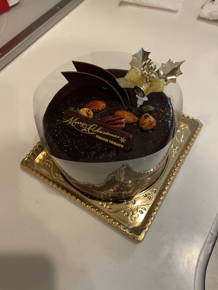 クリスマスケーキは、いつも週末の散歩で寄るイタリアントマト光が丘店のショコラトルテです。