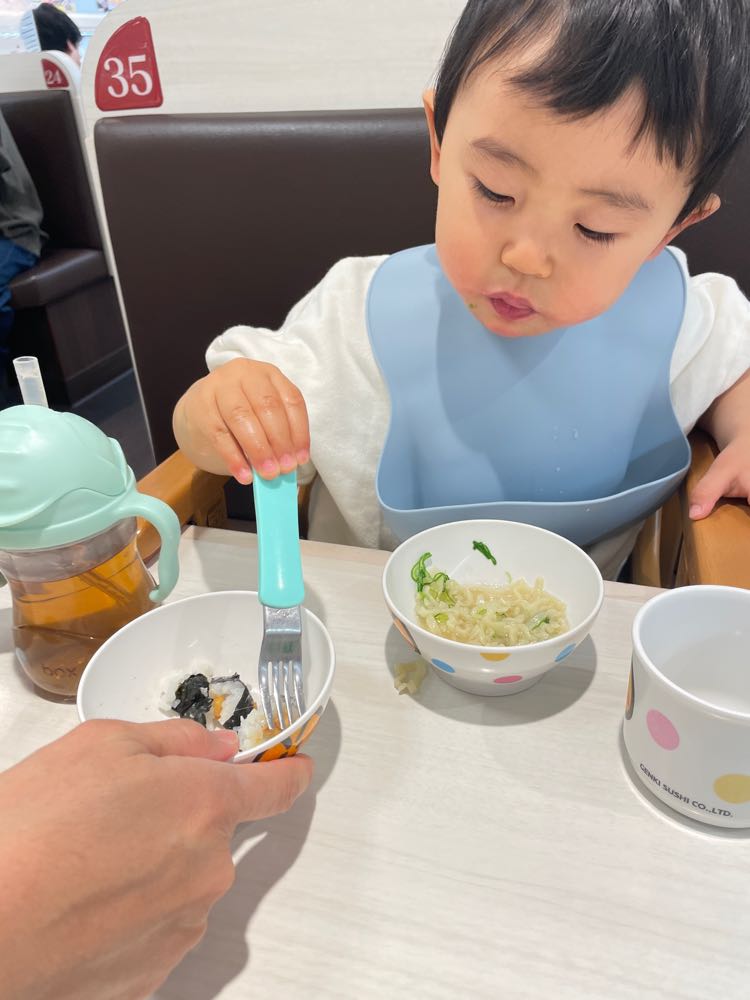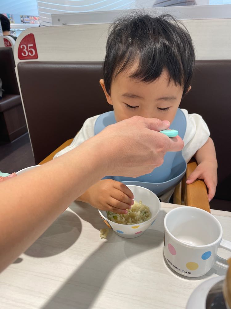 家では、食事中に大暴れしますが、お店では大人しく食べていて、ビックリしました。