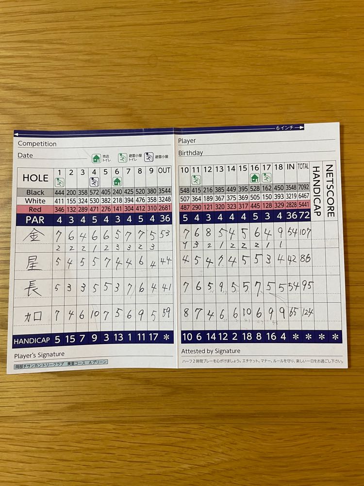 スコアは、OUT53 IN54 の107でした。