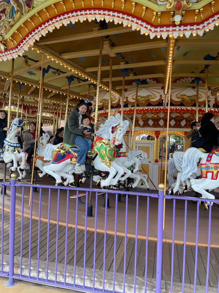 留美のママ友から、攻略法を聞いていたので、いろいろパスを活用して、①イッツアスモールワールド(待ち時間5分)→②ウェスタンリバー鉄道(待ち時間5分)→③美女と野獣(プレミアアクセスで待ち時間10分)→尚央ランチタイム→④ジャンボリーミッキー(エントリーが外れて外野から見学)→⑤プーさんのハニーハント(プライオリティパスで待ち時間10分)→⑥メリーゴーランド(待ち時間5分)→⑦マークトェイン号(待ち時間0分)→⑧ホーンテッドマンション(プライオリティパスで待ち時間10分)→⑨カリブの海賊(待ち時間15分)の9つをアトラクションやショーを見ることができました。