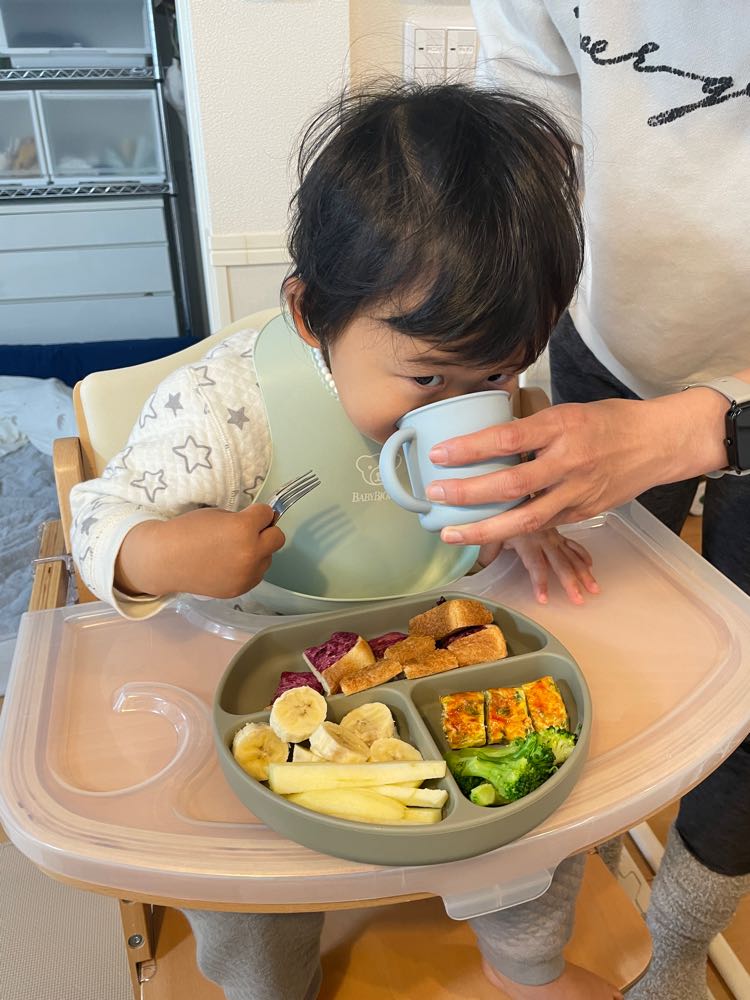 朝ごはんをはやく食べさせろ〜とせがむ尚央。