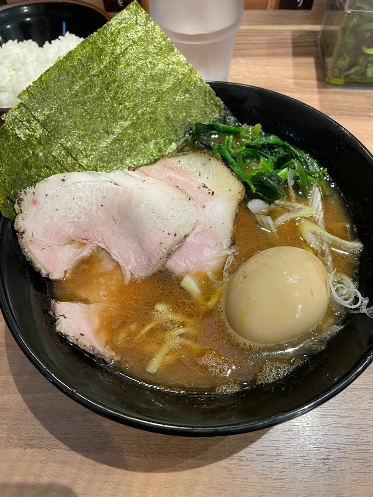 家系ラーメンですが、豚骨よりも醤油の濃さが前面にくるラーメン。ちょっと醤油の濃さが気になります。個人的には濱虎家の方が好きです。