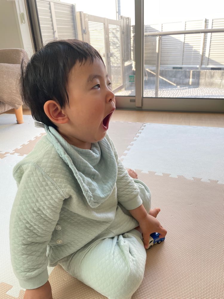 慣れない保育園で、ちょっとお疲れ気味の尚央。