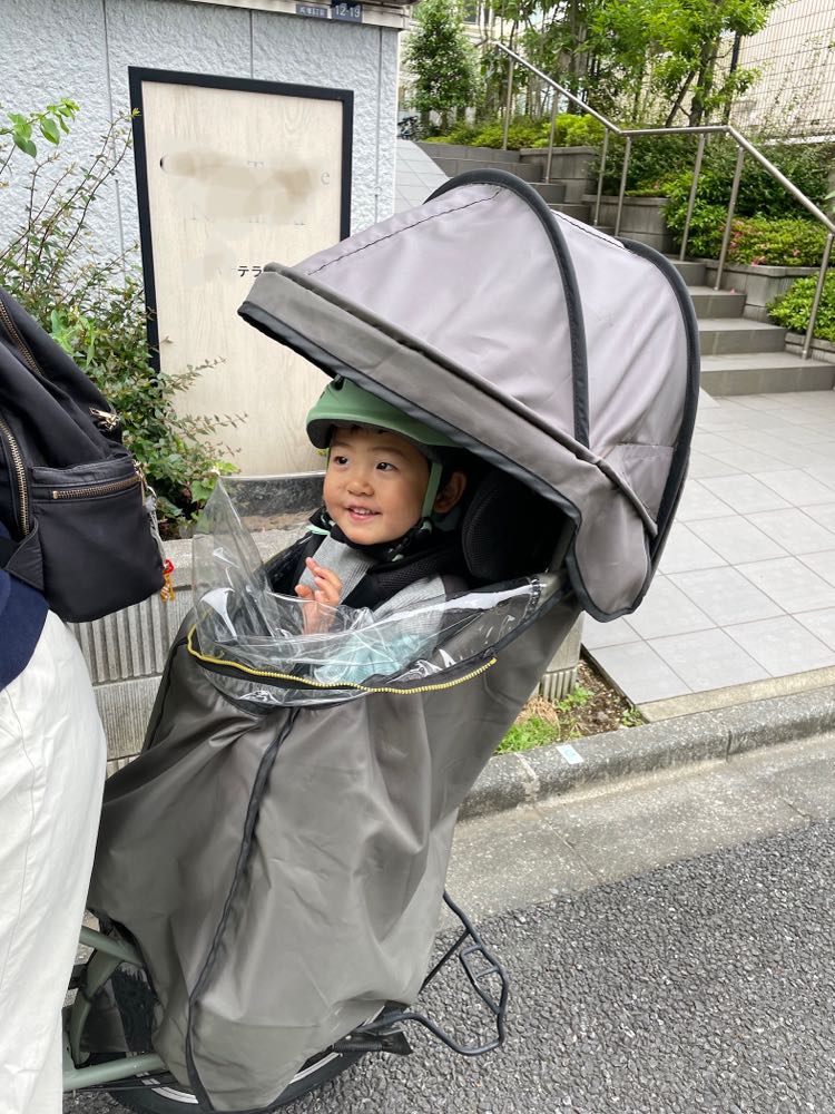 今日は、朝から土砂降りの雨。尚央も雨ガッパを着て、通園です。