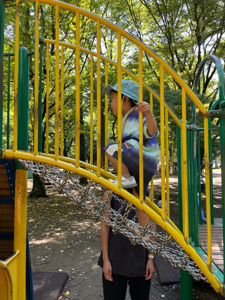 尚央成長日記(392) 投稿日時: 2025年9月6日 投稿者: tokyoenkei 今日は、昨日の雨で朝から気温が30度を下回っていたので、久しぶりに光が丘公園に行ってきました。 久しぶりに外遊びができて、大喜びの尚央でした。