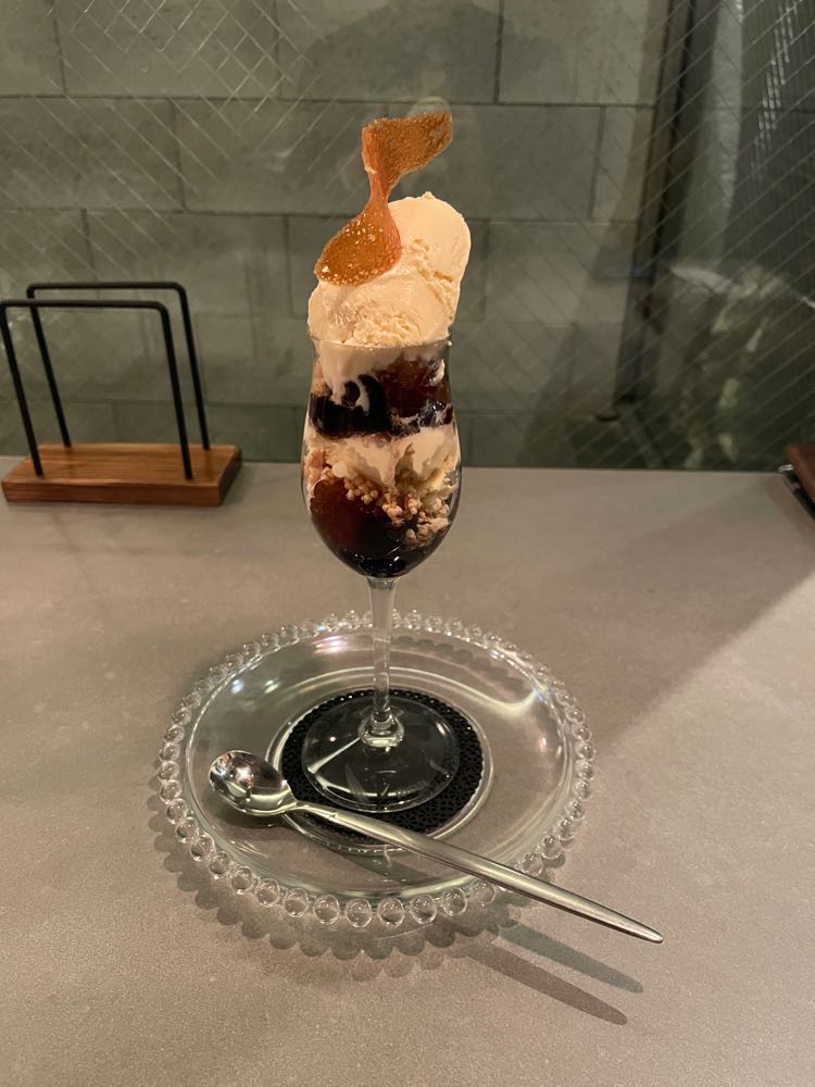 札幌の最後のシメは、シメパフェです。オシャレバー『Hasso Dolceteria Hokkaido』のシメパフェ「落花生のクリーミージェラートのほろ苦く香ばしさ溢れるパルフェ』です。
