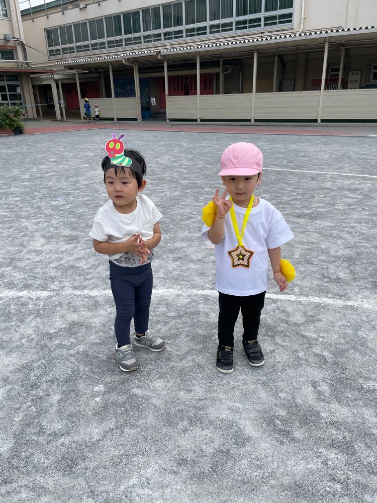1歳児の尚央は、親子で簡単な競技に参加しましたが、グダグダでした(苦笑)