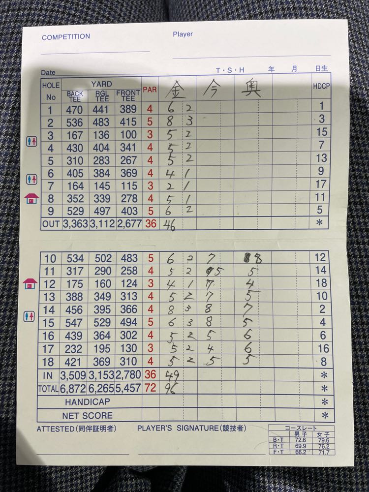スコアは、IN49 OUT46 の95でした。
