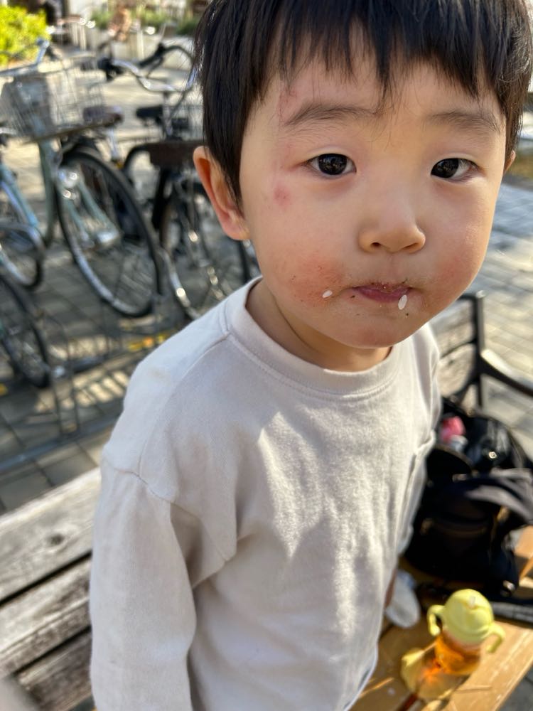 公園で顔面からコケてアザだらけになった尚央。