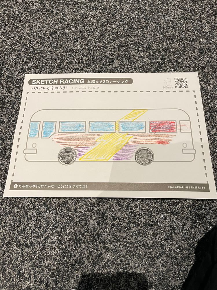 塗り絵したバスを読み込んで、走らせることもできます。
