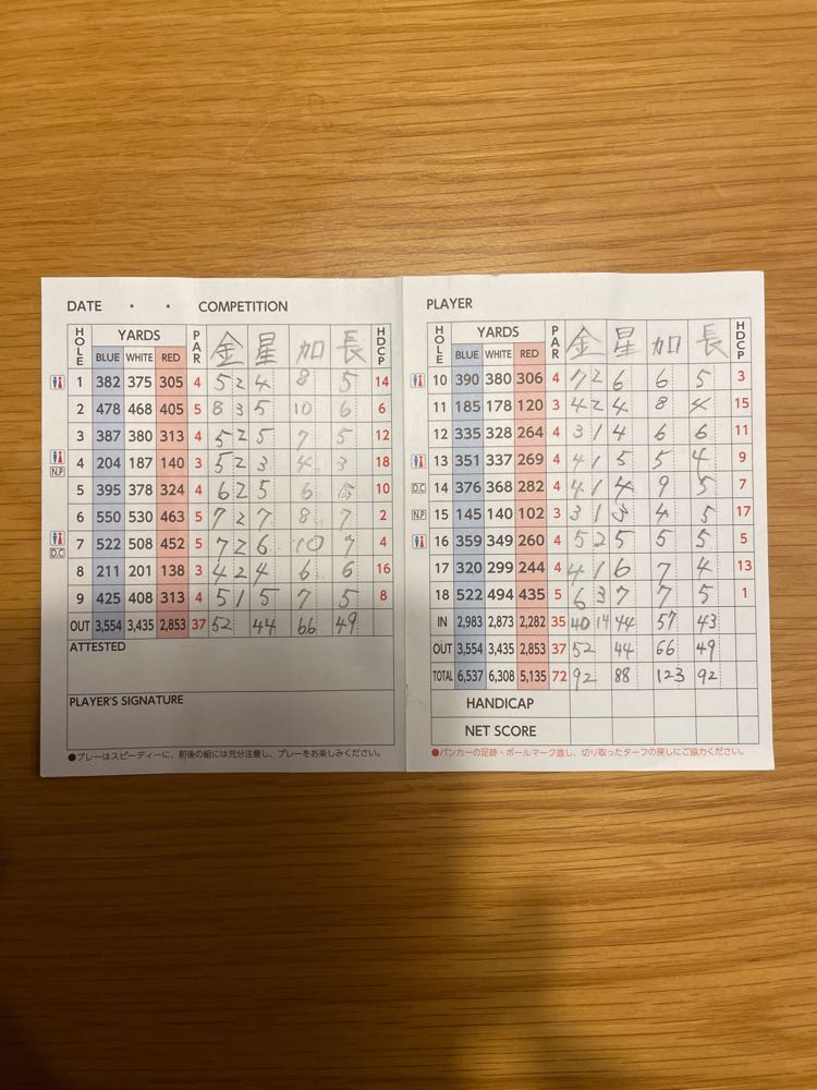 スコアは、IN40 OUT52 の92でした。