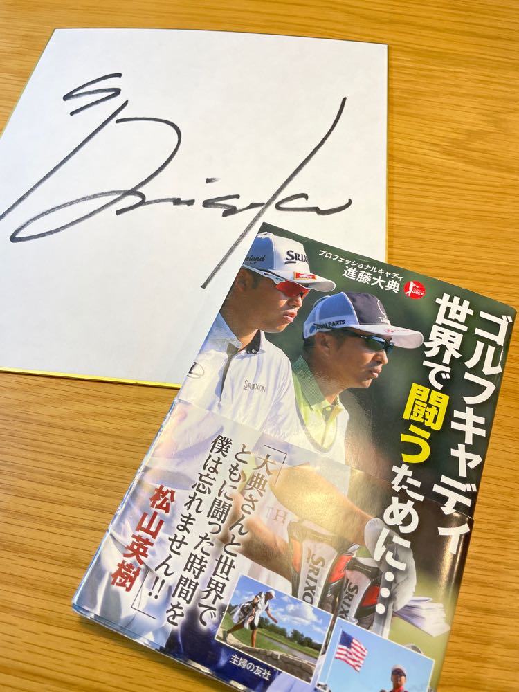 トークショーの特典で『進藤大典さんのサイン』、アプローチ対決の景品『進藤大典さんの著書』をいただきました。