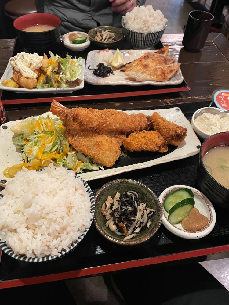 海鮮のミックスフライ定食(特製タルタル付)!ボリューム満点でめちゃくちゃ美味い。