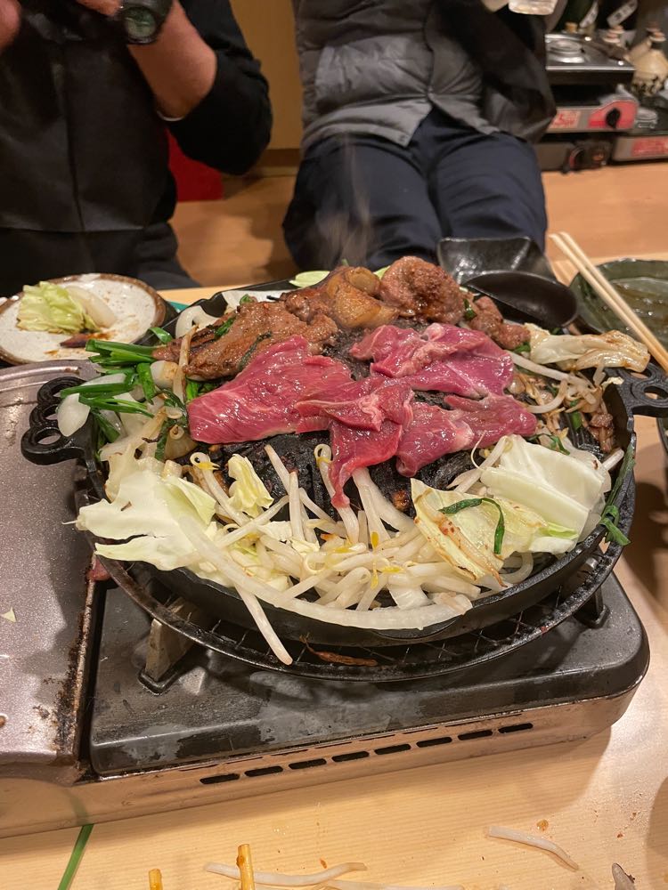横綱コースで、ジンギスカン食べ放題とちゃんこ鍋のみ(アルコール飲み放題付き)。