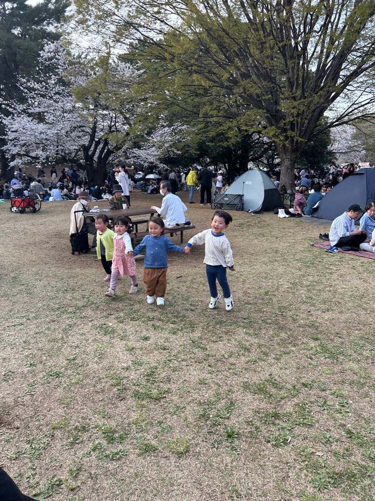 今日は、保育園に入る前によく会っていた児童館の友達と花見に行った尚央。